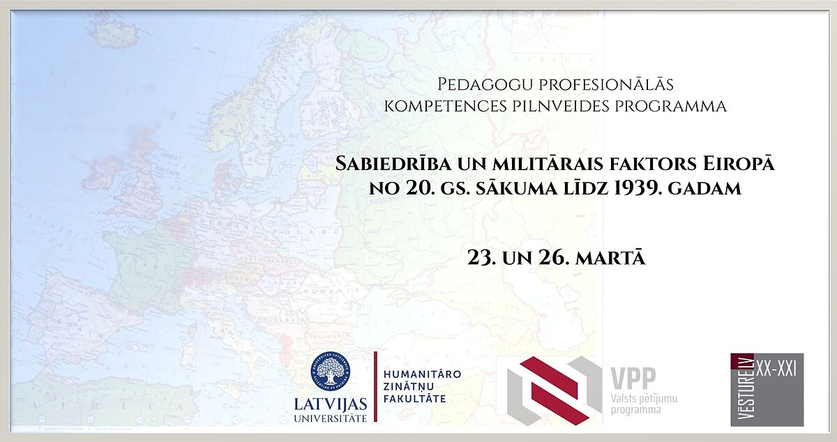 Aicinām vēstures un sociālo zinību skolotājus piedalīties jaunā mūžizglītības programmā, kas aplūko militārā faktora ietekmi uz sabiedrību Eiropā no 20. gs. sākuma līdz Otrajam pasaules karam, padziļinātu uzmanību pievēršot Latvijas teritorijai.