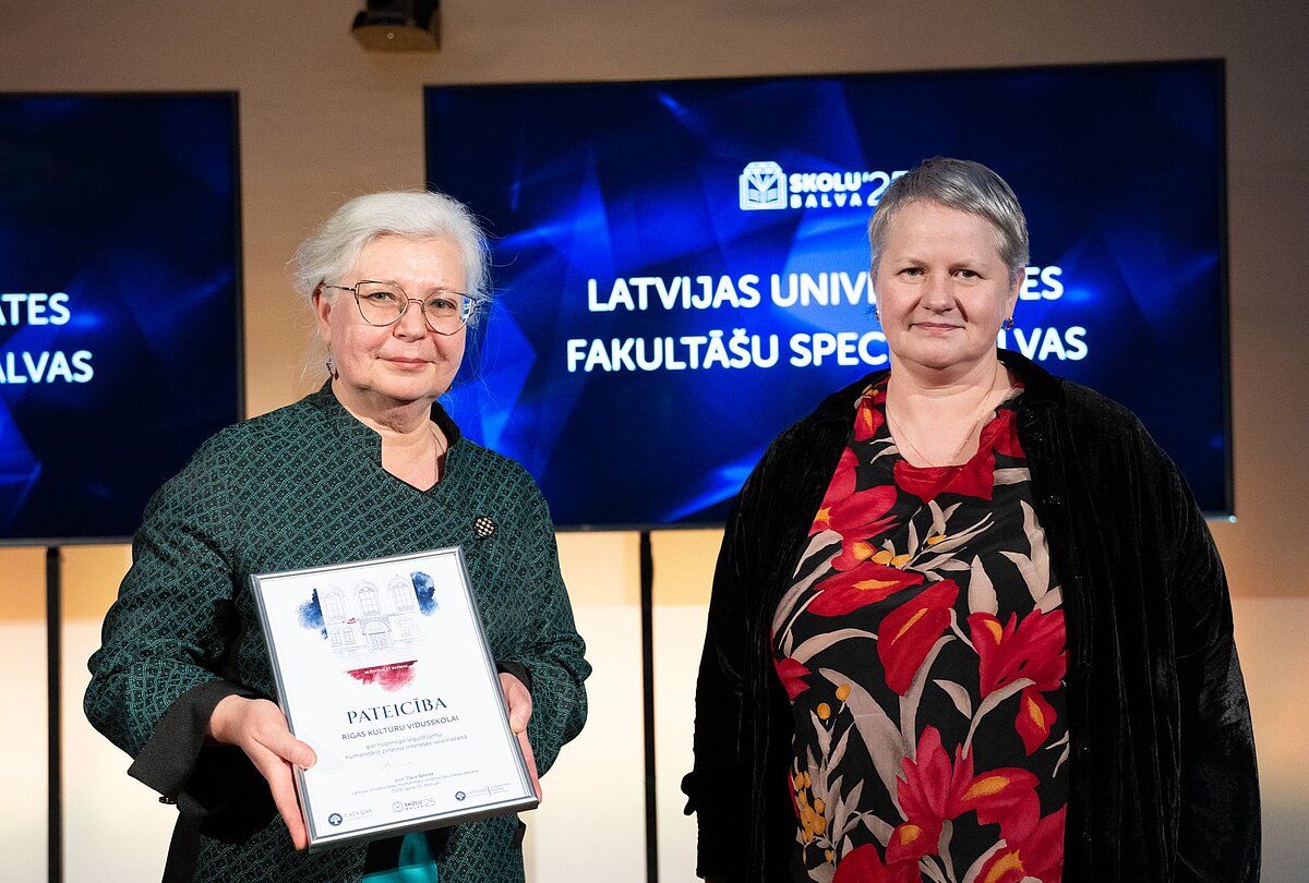 LU HZF dekāne profesore Dace Balode pasniedza fakultātes pateicības rakstu par nozīmīgo ieguldījumu intereses par humanitārajām zinātnēm veicināšanā Rīgas Kultūru vidusskolai. 2025./2026. akadēmiskajā gadā HZF visvairāk studē tieši šīs skolas absolventi – viņi turpina studijas Filozofijas, Āzijas un starpkultūru studiju, Vēstures un arheoloģijas, Anglistikas, Eiropas valodu un biznesa studiju un citās HZF programmās.