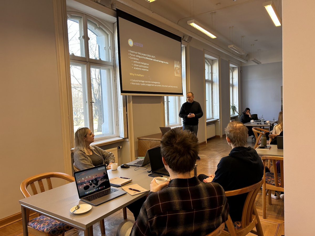 AISTER ir starptautisks Erasmus+ KA2 programmas projekts, kurā sadarbojas partneri no Luksemburgas Universitātes, Latvijas Universitātes (HZF DHC un LUB), Tarasa Ševčenko Kijivas Nacionālās universitātes (Ukraina), Web2Learn (Grieķija) un Europeana (Nīderlande). Tā galvenais mērķis ir pētīt mākslīgā intelekta rīku un sabiedriskās zinātnes iespējas darbā ar kultūras mantojuma saglabāšanu un restaurāciju krīzes situācijās.