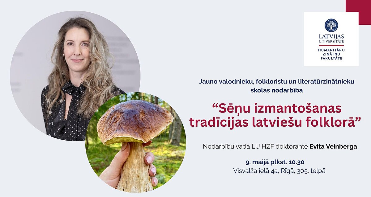 Nodarbību vadīs LU HZF Valodu un kultūru studiju programmas doktorante, Latvijas Mikologu biedrības valdes locekle un raidījuma par sēnēm “Micēlijs” veidotāja Evita Veinberga.